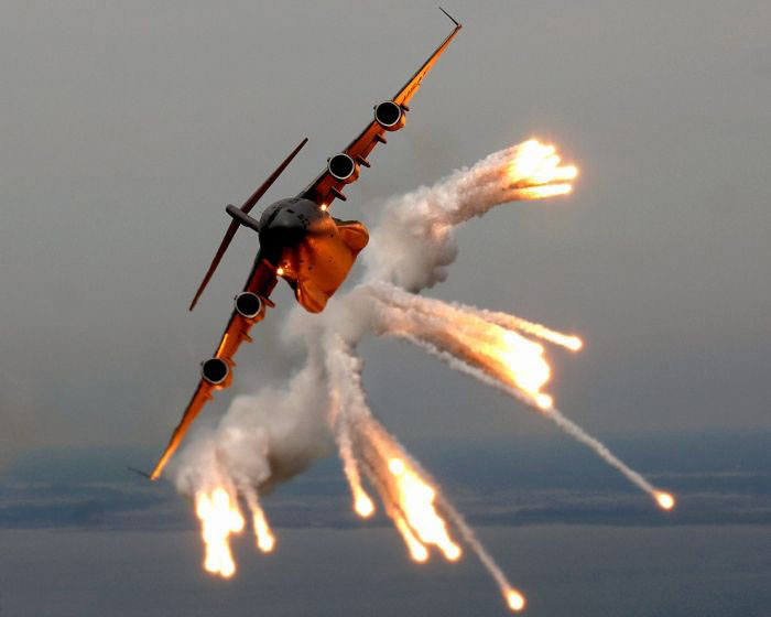 تصاویری از پرواز در غروب هواپیمای جنگنده و هلکوپتر